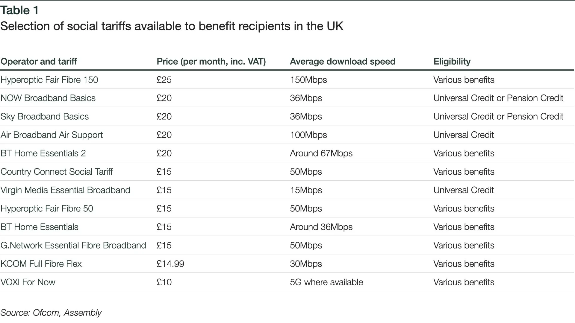 In the telecoms sector, operator-led initiatives to support vulnerable customers have been available for a number of years. However, amid a backdrop of low economic growth and high inflation having sparked a cost of living crisis for many households, government and industry are looking to do more to help consumers cope with mounting pressures on their finances. In the UK, a number of providers are now offering additional discounted tariffs for connectivity (see Table 1).