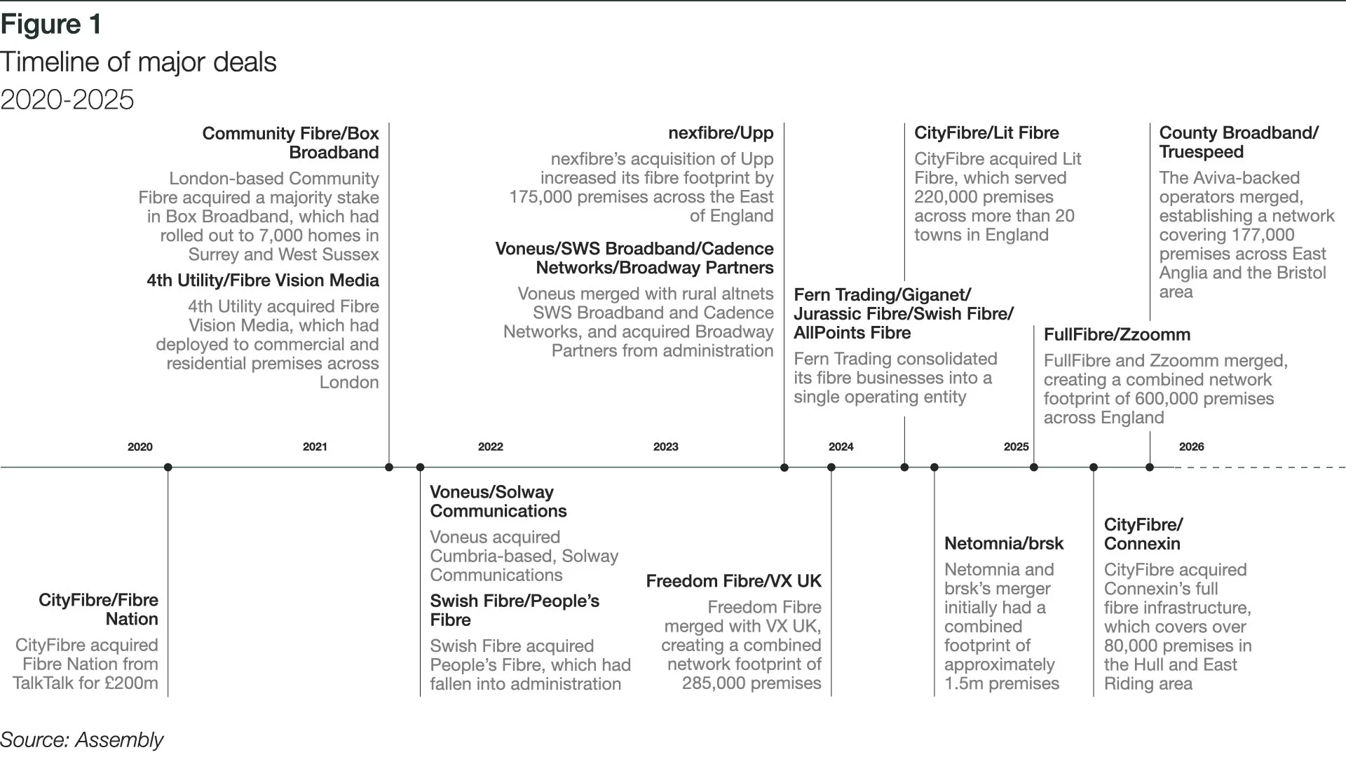 DSIT is a likely advocate of consolidation, while Ofcom has recognised the current fragmentation of competition, which means that some altnets will not survive long-term. The CMA’s stance is less well known, with the merits of each transaction assessed on a case-by-case basis.