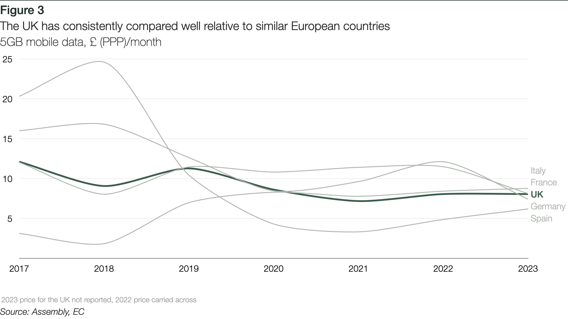 Mobile prices in the UK continue to compare well to other leading European countries