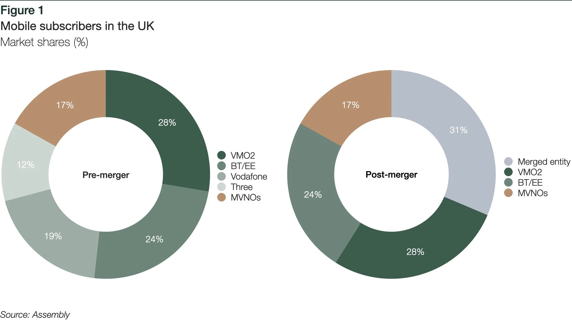 On 13 September 2024, the Competition and Markets Authority (CMA) released its provisional findings in the Phase 2 review of the proposed merger of Three and Vodafone in the UK. When announcing the transaction, Margherita Della Valle (CEO, Vodafone Group) claimed it would be “great for customers, great for the country and great for competition”, while Robert Finnegan (CEO, Three UK and Ireland) stated that it represents a chance to “close the 5G gap” on leading European markets, previously describing the UK mobile industry as “dysfunctional” and “overcrowded”. The deal would reshape the mobile market, creating a new leading operator by share of subscribers – see Figure 1. Despite concerns from some politicians about Three’s parent company CKHGT’s links to China, the merger has been approved by the UK Government under the National Security and Investment Act 2021, subject to conditions.