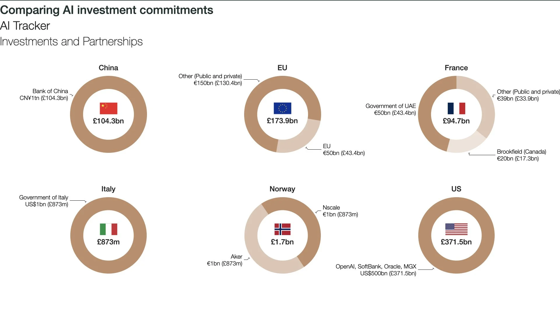 We’ve added a new benchmark on Investments and Partnerships into our AI Tracker. The benchmark covers investments in AI and partnerships between governments and the private sector on AI, detailing the sources of funding, categories of investment such as infrastructure development or skills and education, total investment committed and how much has been confirmed so far, and who the contributors are.