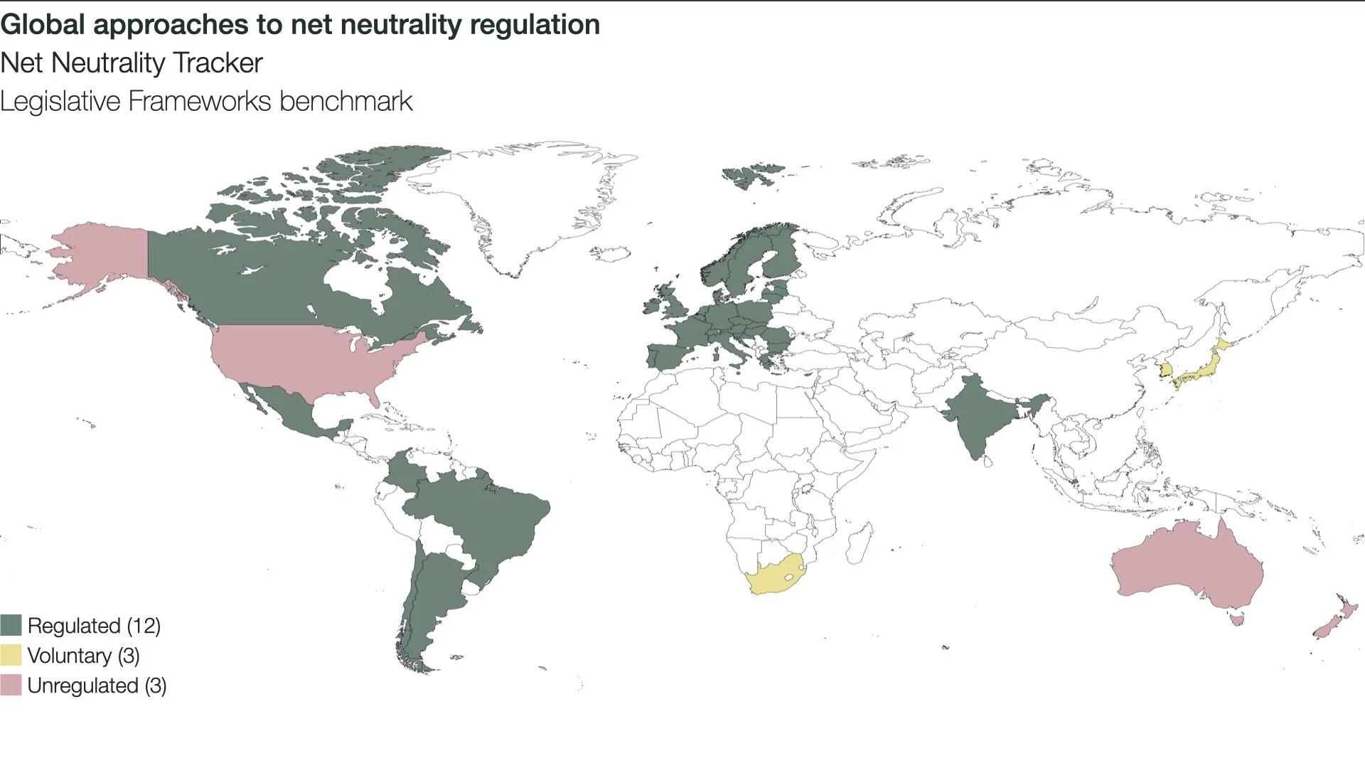 We’ve updated the Legislative Frameworks benchmark within our Net Neutrality Tracker to reflect the finalisation of the US Court of Appeals’ decision to strike down federal net neutrality rules. The decision, which found in January 2025 that the Federal Communications Commission’s (FCC) vote to reinstate net neutrality regulation was illegal, will not be reviewed by the Supreme Court. The finalised decision also aligns with the stance of Brendan Carr (Chair, FCC), who took over leadership of the regulator in 2025 and has been a longtime opponent of net neutrality regulation. The US now joins Australia, New Zealand, Japan, South Africa and South Korea as the six countries in our benchmark that do not regulate net neutrality, although the latter three do have voluntary guidelines on the matter. In both Australia and New Zealand, competition between operators and existing consumer protection laws have been deemed sufficient by regulators to ensure an open internet remains accessible to all.